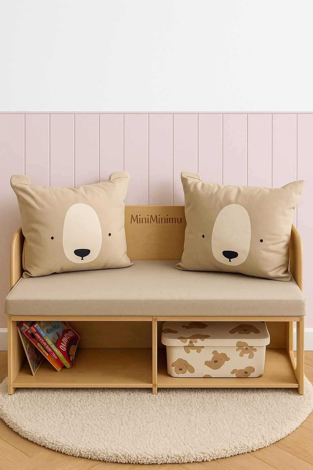 Minimu Çocuk Koltuğu; doğal huş ağacından üretilmiş, hem estetik hem fonksiyonel tasarımıyla miniklere özel konfor alanı sunar. Yumuşak minder yapısı rahat bir oturum sağlarken, alt raf bölmesi kitap ve oyuncaklar için pratik depolama alanı oluşturur. Minimal tasarımı sayesinde çocuk odalarına sıcak, düzenli ve şık bir görünüm kazandırır.
